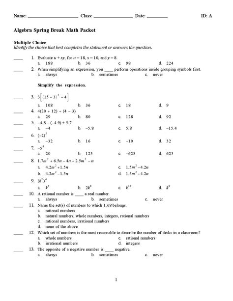 Read Online algebra 1 spring break packet 2014 answers Library Binding ManyBooks